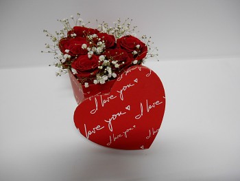 9 krásných růží v krabičce /základní barvy -červená,bílá, růžová /